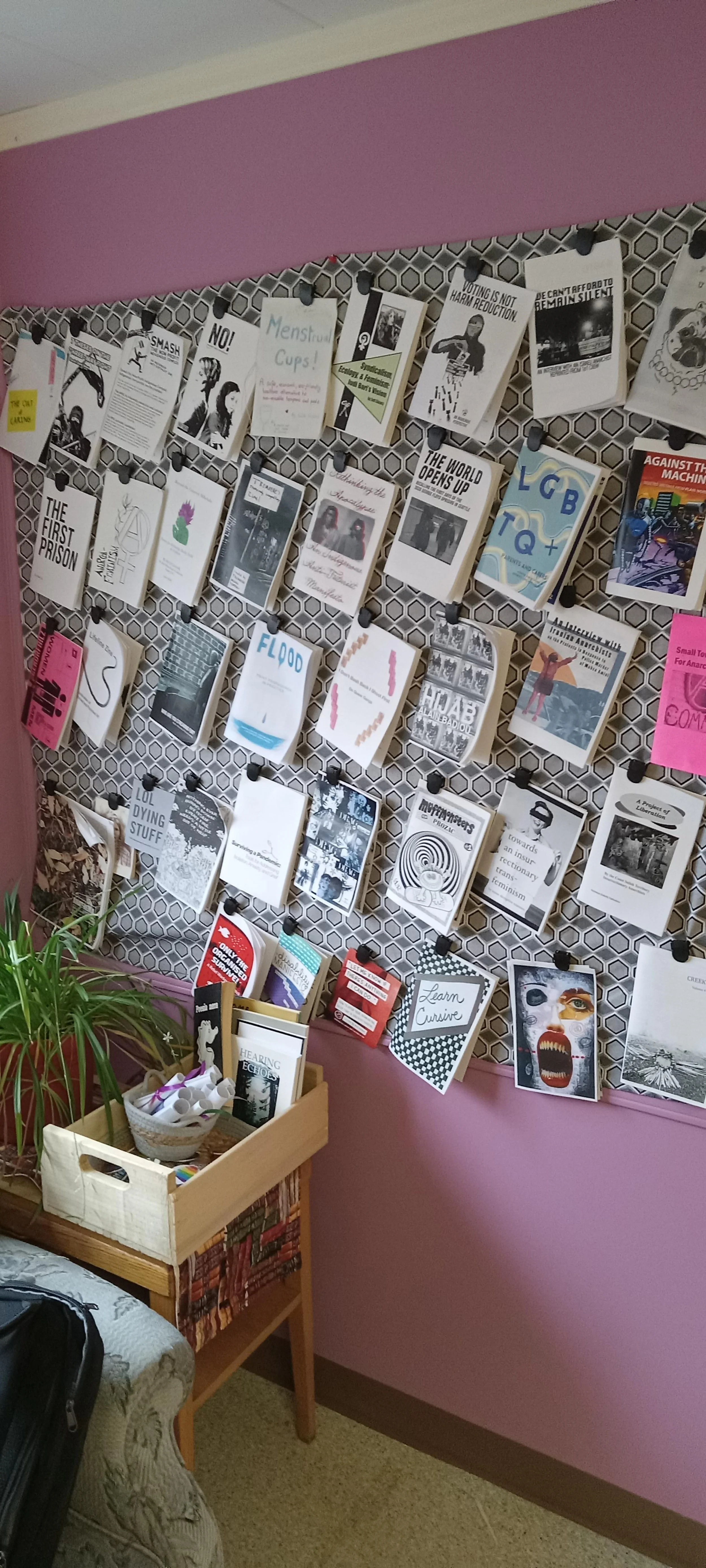 Zines are about connection, expression, and self-determination. They give voice to perspectives often overlooked by mainstream media. This library and workstation aims to: